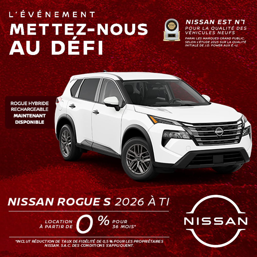 Ce NISSAN ROGUE S 2026 est disponible chez Matane Nissan à Matane. Contactez notre équipe des ventes ou venez nous visiter au 786 Av. du Phare E pour obtenir plus d'informations, en faire l'essai ou le réserver.